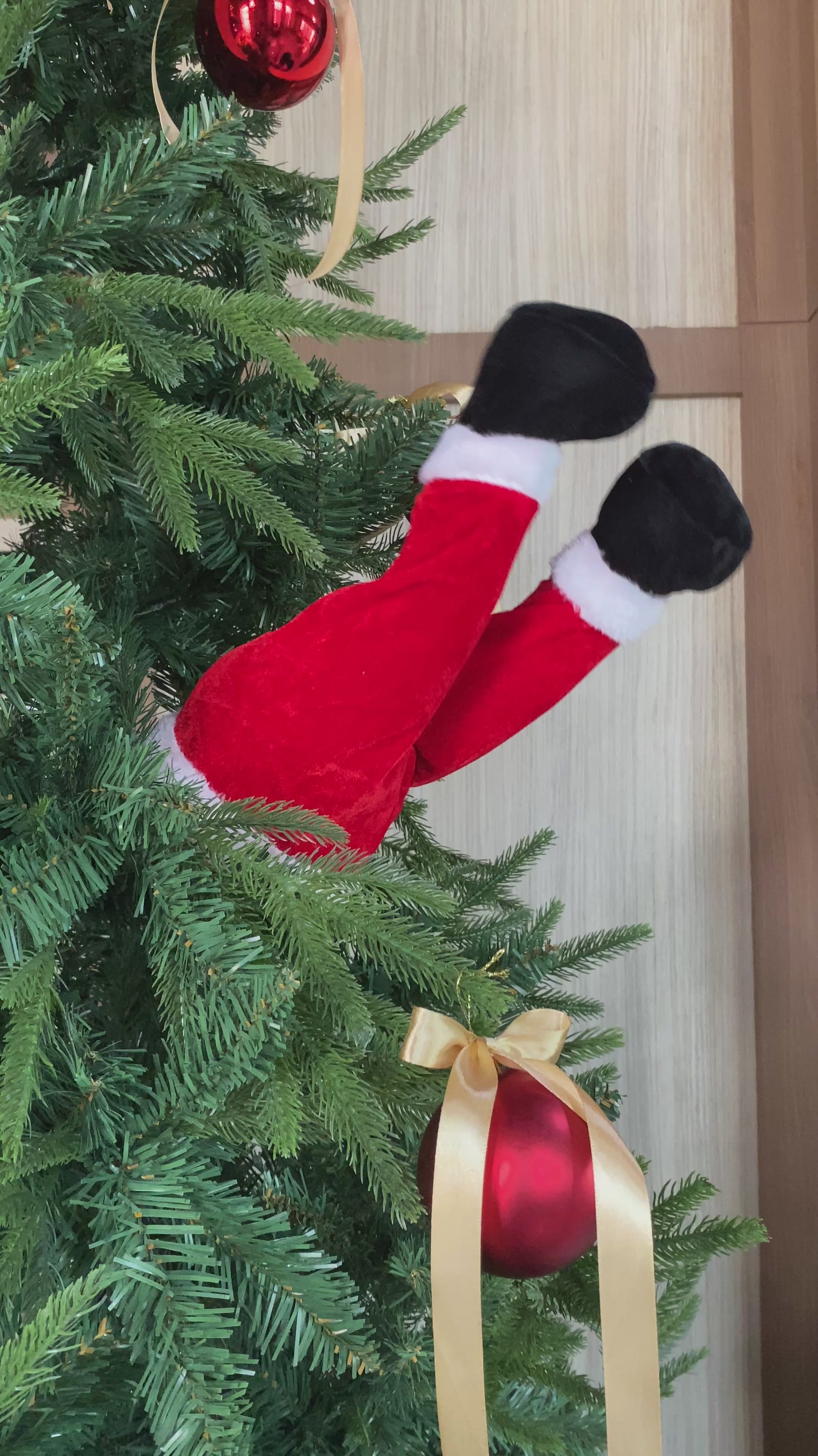 ขาซานต้าแต่งต้นคริสต์มาส มาพร้อมกิ๊ฟหนีบลำต้น ขาขยับได้อัตโนมัติ